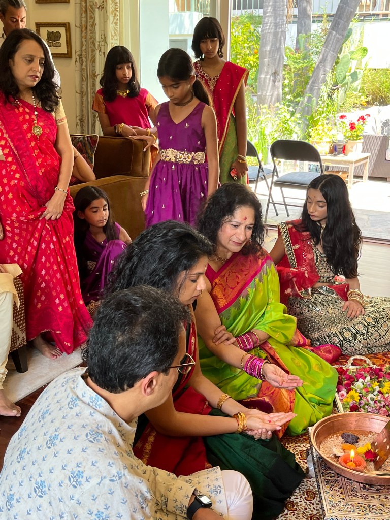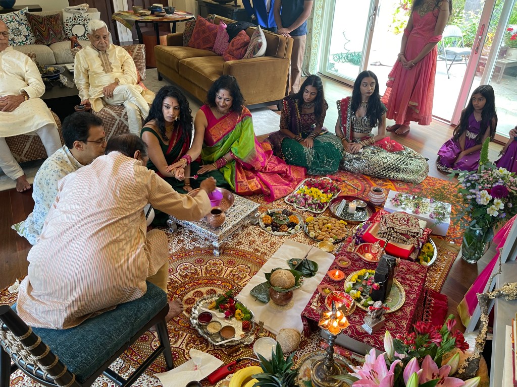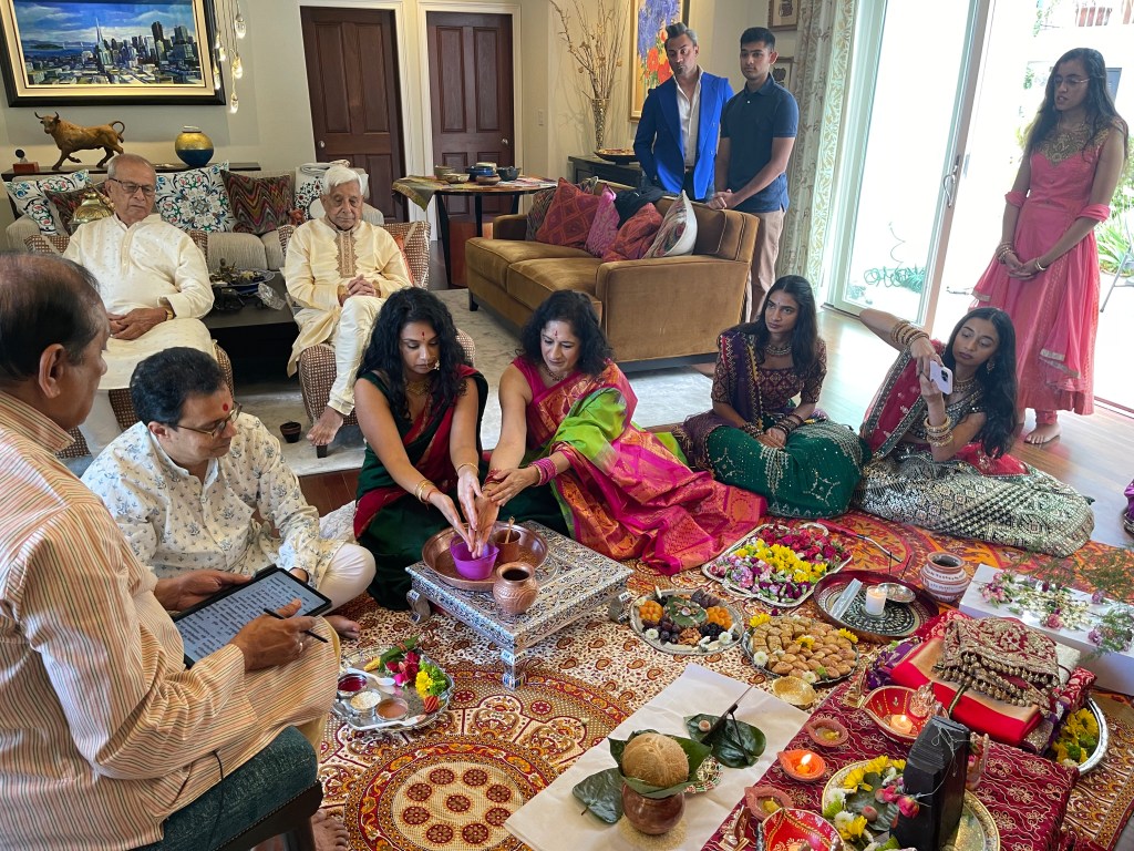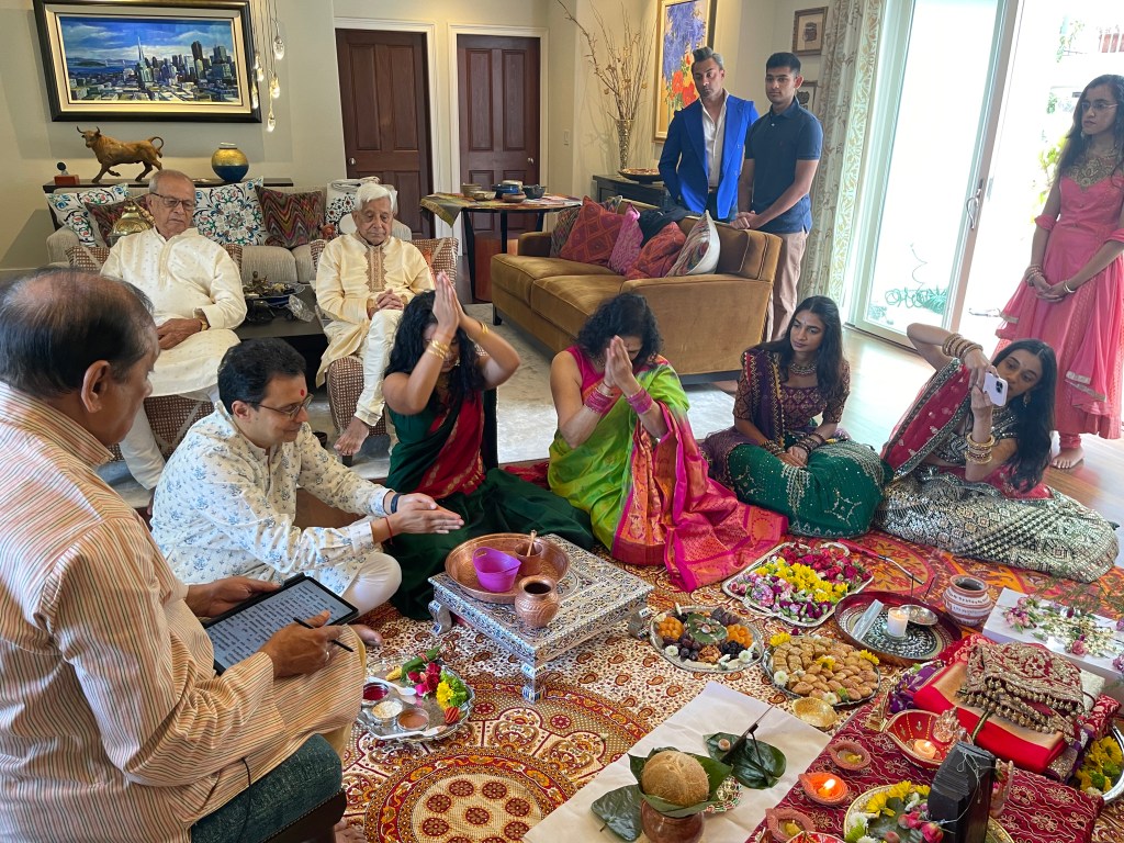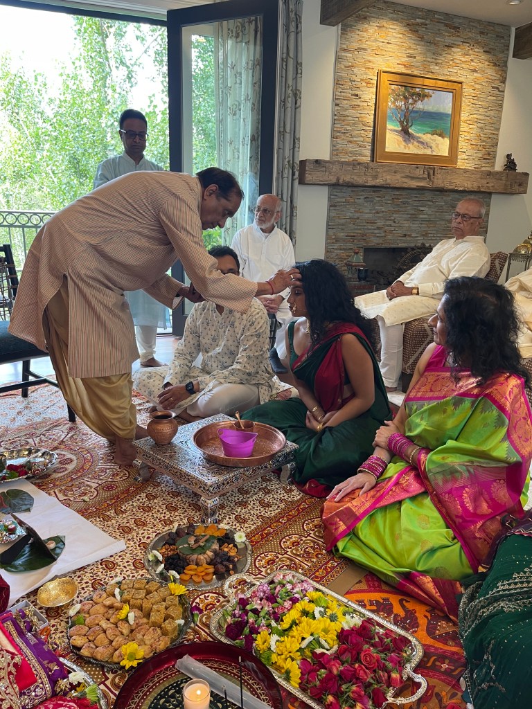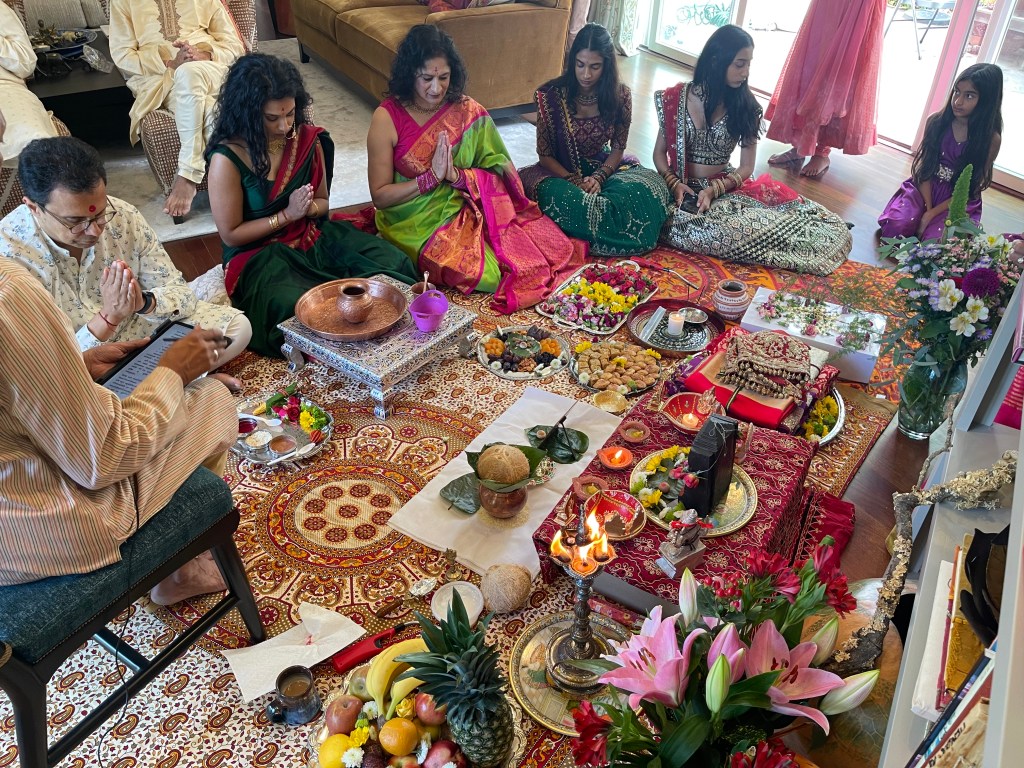 Starting off our official wedding festivities with an auspicious Ganesh puja and mandap muhurat to bless the upcoming wedding of Sridevi and Pranav.