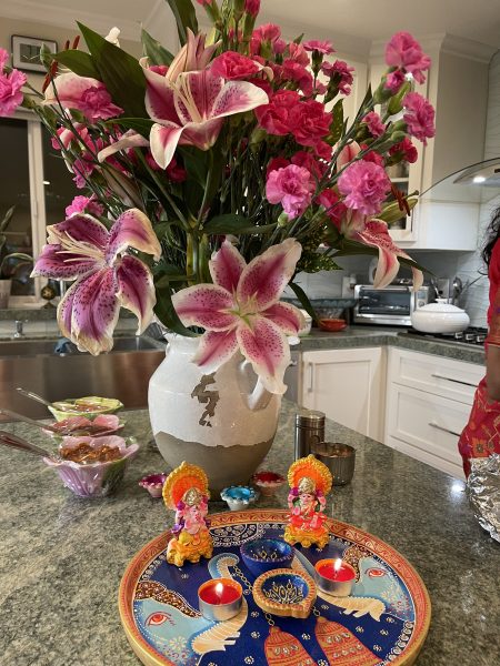 A special Diwali was observed at Vijay and Priya’s this year to celebrate their son Pranav and new daughter-in-law Sridevi’s (our daughter’s) first Diwali together as a married couple. A close family gathering held in their honor was a festive evening filled with smiles.