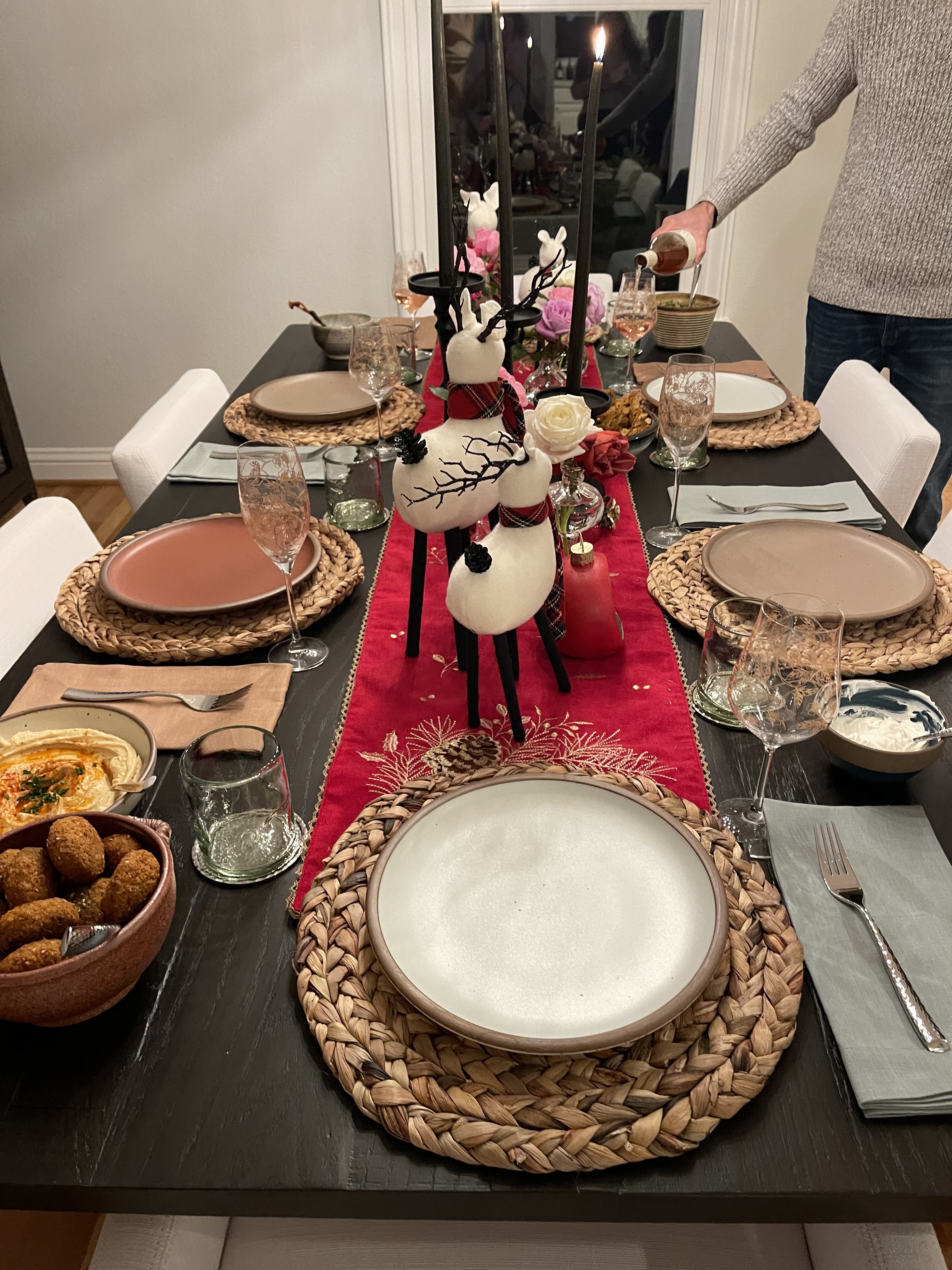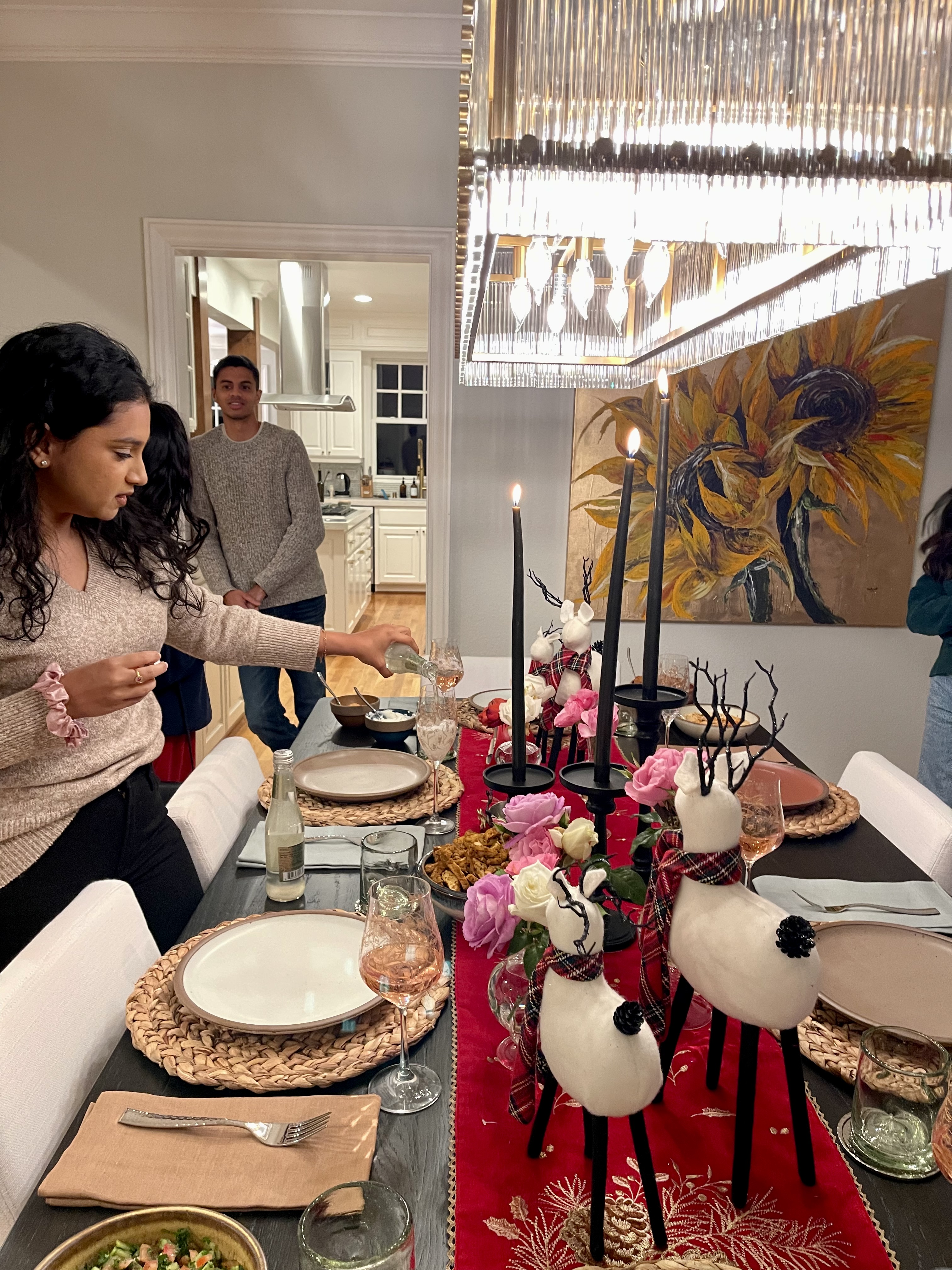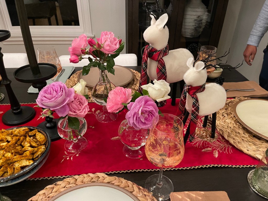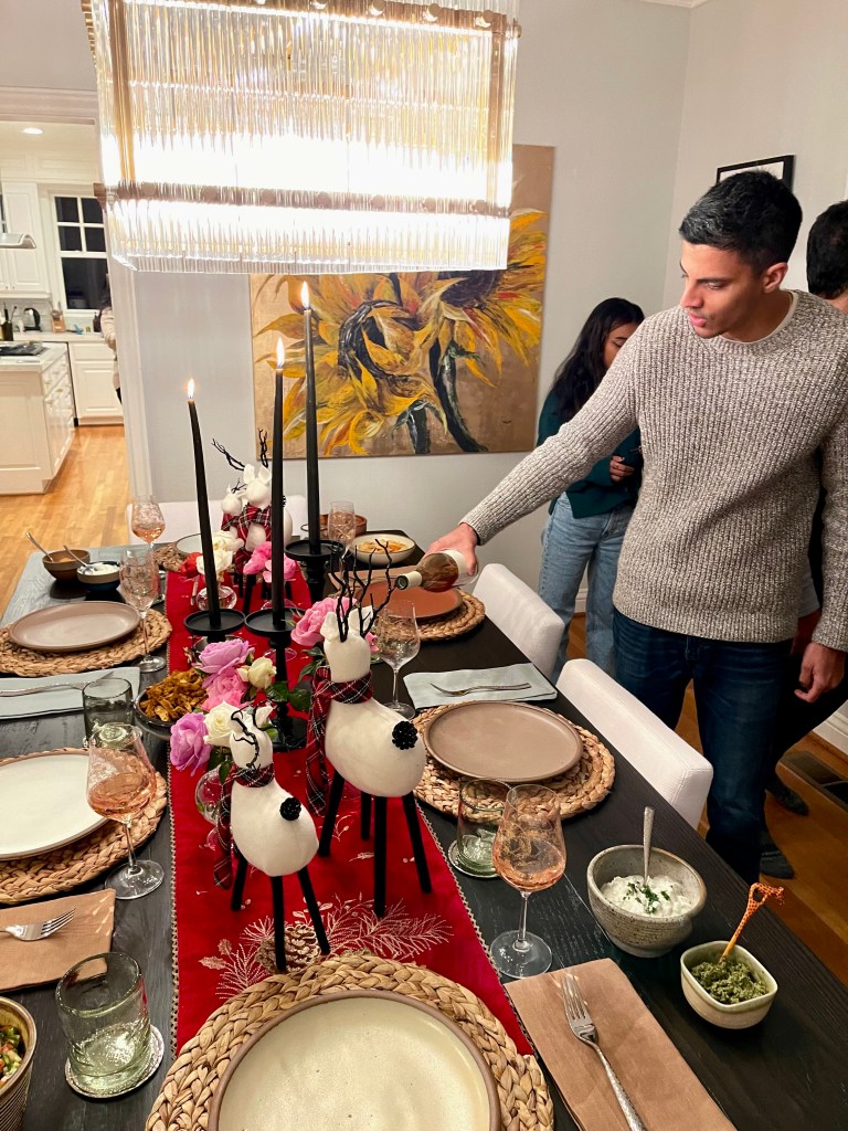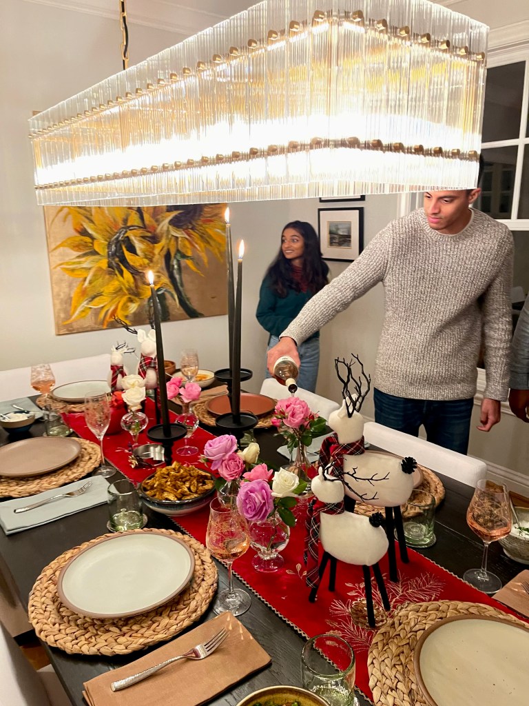 A last minute casual dinner before heading off to Malibu for Thanksgiving was hosted by Sri and Pranav. A beautiful dinner in their already decorated for Christmas home 🎄! The menu was Greek with a table set for the season. A relaxing and fun evening was had by all before we left for Malibu the following day.