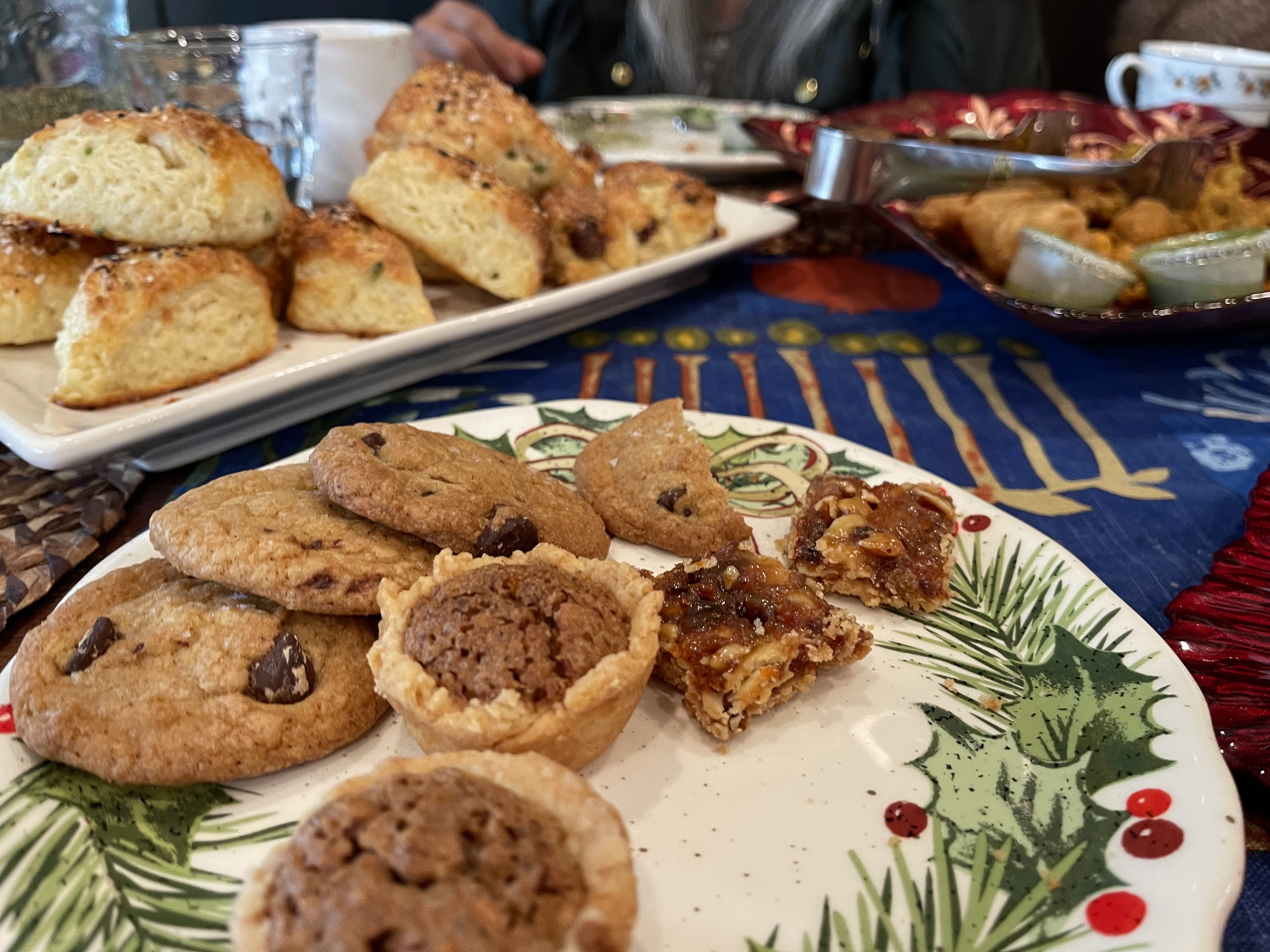 Continuing our annual tradition of meeting over the holidays with dear friends Devi and Rose🎄. A chilly December afternoon was warmed up with good friends, homemade scones, piping hot tea, sweets, persimmons, pakoras and presents 🎁. Always a wonderful time with two of my dearest friends 💕.