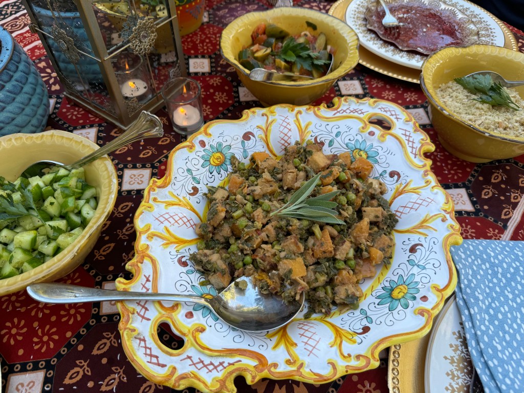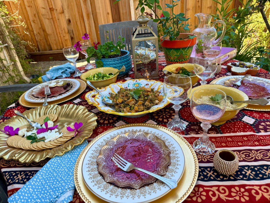 My dear friend Radhika hosted an intimate dinner for two last Sunday to celebrate my 60th birthday. A beautiful evening of heartfelt conversation, and delicious Mediterranean style Tuscan dinner in her charming garden, all topped off with a refreshing spritzer and white wine.