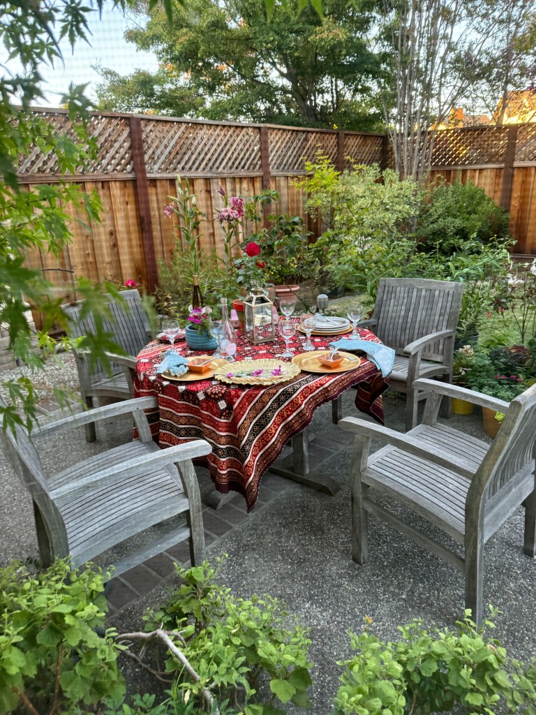 The tablescape, the flowers and Radhika’s charming garden