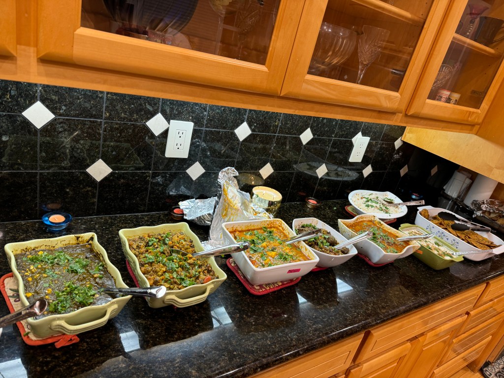 Celebrating Rupa’s birthday with a giant feast at Shraddha and Kishor’s place. Chaat appetizers, dinner and dessert on a festive evening for our birthday girl ππ.