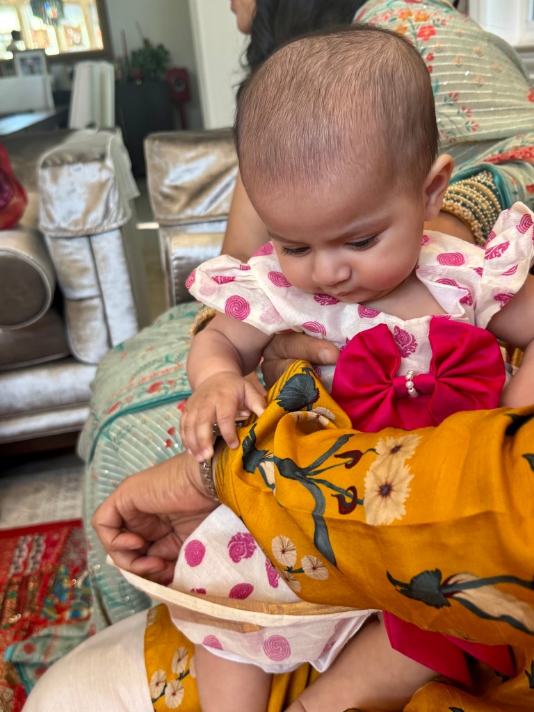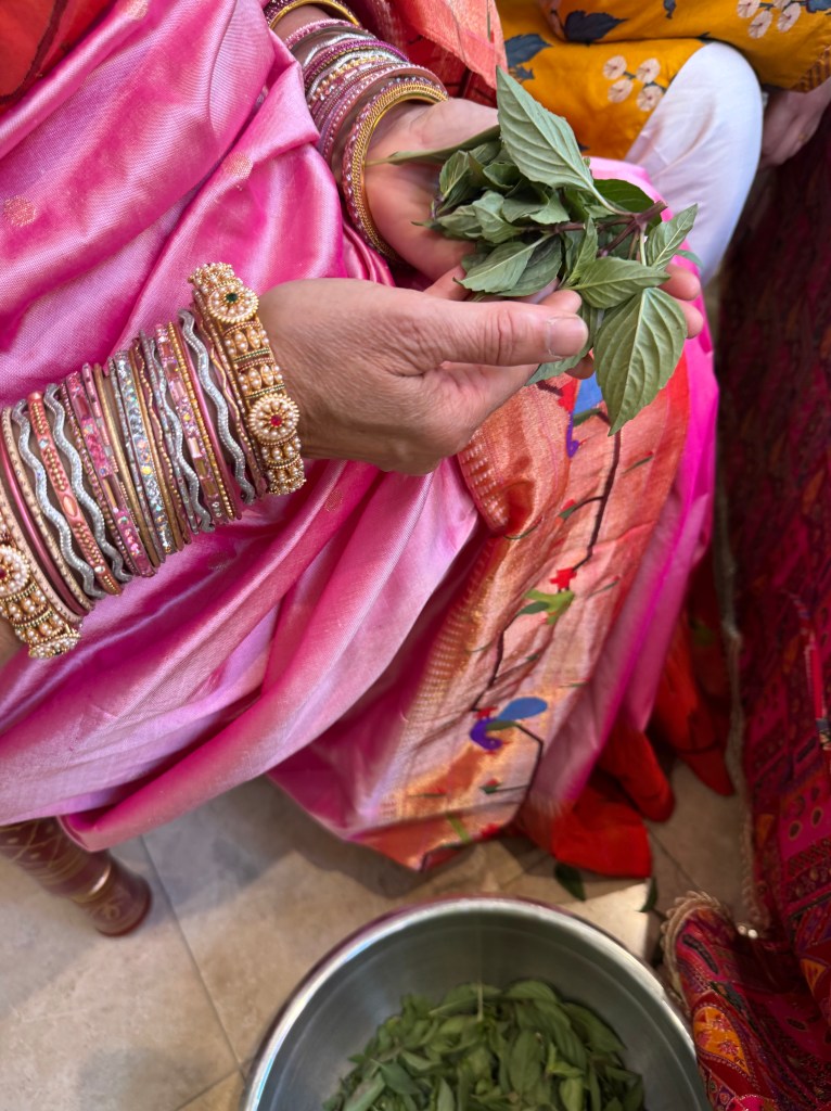 Sunny pleasant spring March day for an auspicious Satyanarayan puja, first one for baby Radha 💕.